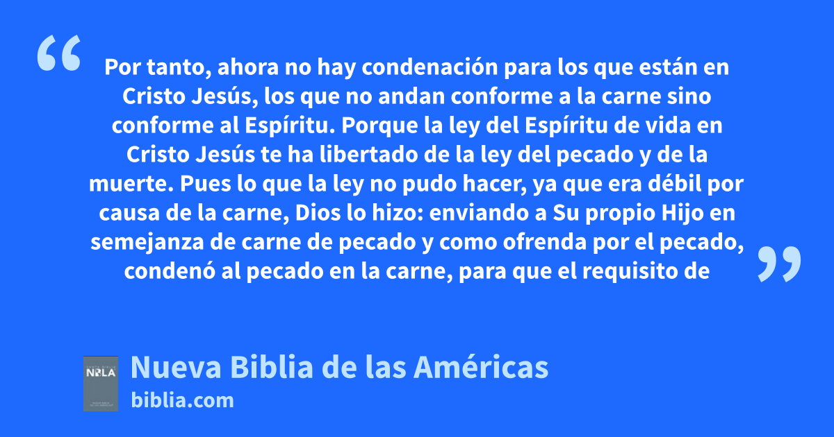3 Pues lo que la ley no pudo hacer, ya que era débil por causa de la carnea, Dios lo hizob: enviando a Su propio Hijo en semejanza de carne de pecado y como ofrenda por el pecado, condenó al pecado en la carnec,