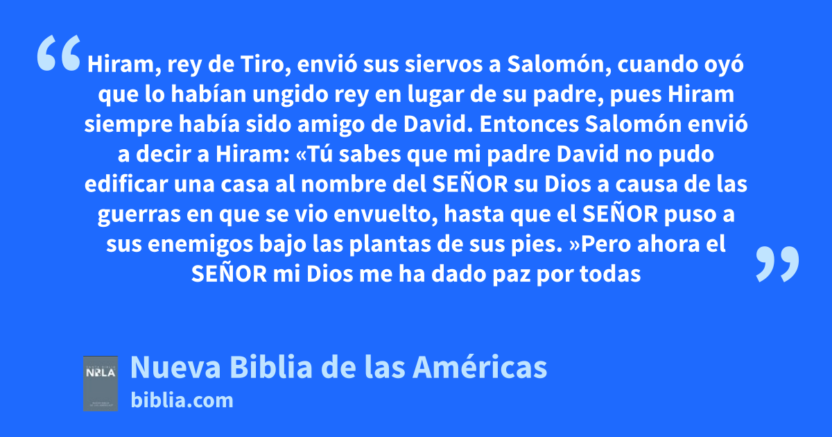 5 1Hiram, rey de Tiro, envió sus siervos a Salomóna, cuando oyó que lo habían ungido rey en lugar de su padre, pues Hiram siempre había sido amigo de Davidb.