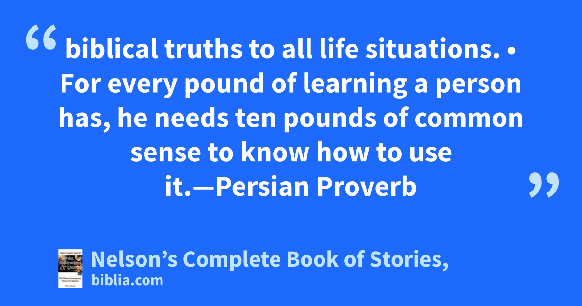biblical truths to all life situations. • For every pound of learning a person has, he needs ten pounds of common sense to know how to use it.—Persian Proverb
