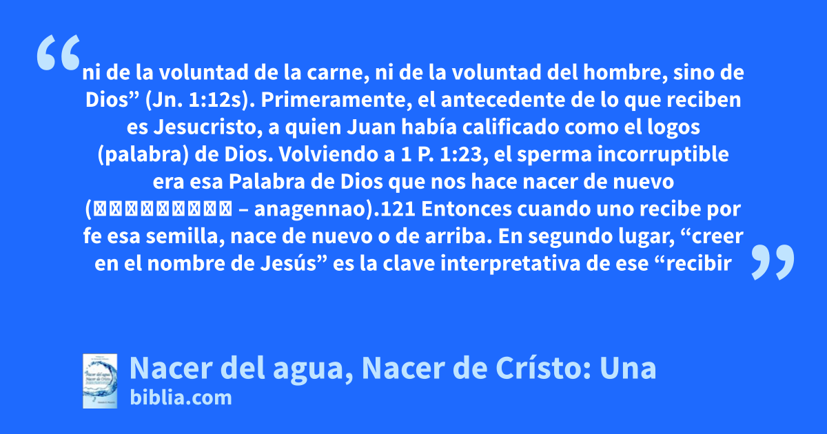 Dentro del mensaje de las Escrituras el agua juega un papel importante. La Biblia habla ciertamente mucho del agua: menciona por lo menos 1720 veces el tema “agua” directa o indirectamente. No pretende este libro trabajar el tema de las aguas in extenso, pero es claro que el relato bíblico se inicia con aguas (Gn. 1:2) y finaliza con ellas (Ap. 22:17). Y dentro de este “marco acuoso”, Jesús...