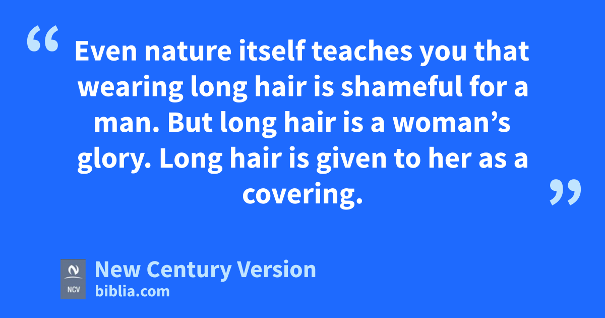 11 But in the Lord women are not independent of men, and men are not independent of women. 12 This is true because woman came from man, but also man is born from woman. But everything comes from God. 13 Decide this for yourselves: Is it right for a woman to pray to God with her head uncovered? 14 Even nature itself teaches you that wearing long hair is shameful for a man. 15 But long hair is a woman’s glory. Long hair is given to her as a covering. 16 Some people may still want to argue about this, but I would add that neither we nor the churches of God have any other practice.