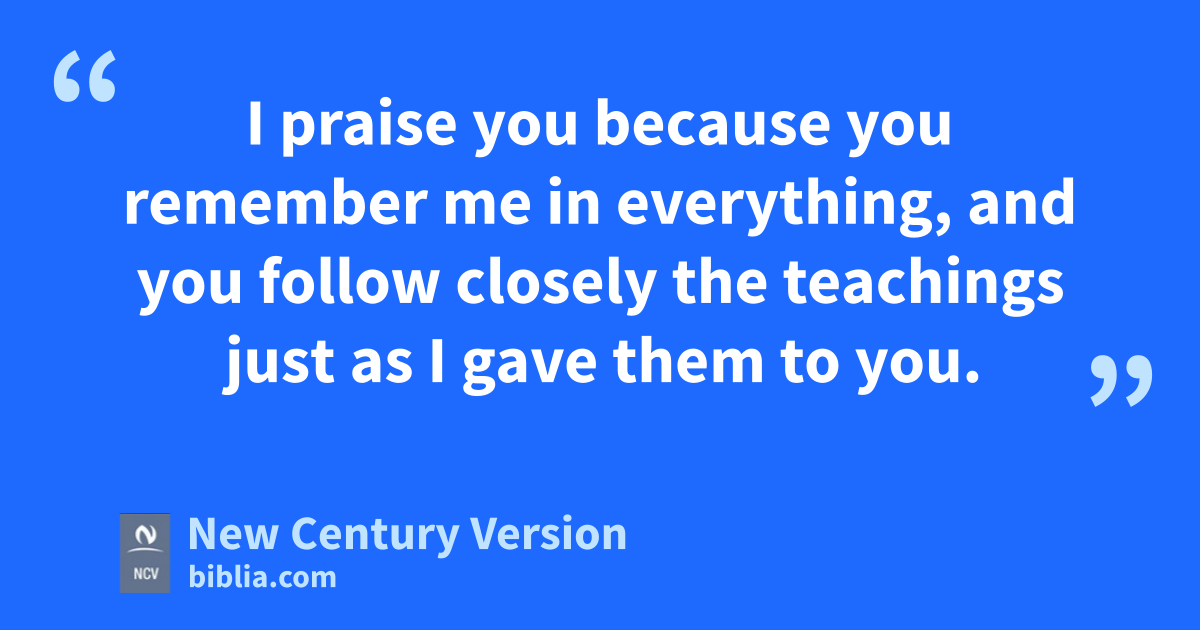 2 I praise you because you remember me in everything, and you follow closely the teachings just as I gave them to you. 3 But I want you to understand this: The head of every man is Christ, the head of a woman is the man, n and the head of Christ is God. 4 Every man who prays or prophesies with his head covered brings shame to his head. 5 But every woman who prays or prophesies with her head uncovered brings shame to her head. She is the same as a woman who has her head shaved. 6 If a woman does not cover her head, she should have her hair cut off. But since it is shameful for a woman to cut off her hair or to shave her head, she should cover her head. 7 But a man should not cover his head, because he is the likeness and glory of God. But woman is man’s glory. 8 Man did not come from woman, but woman came from man. 9 And man was not made for woman, but woman was made for man. 10 So that is why a woman should have a symbol of authority on her head, because of the angels.