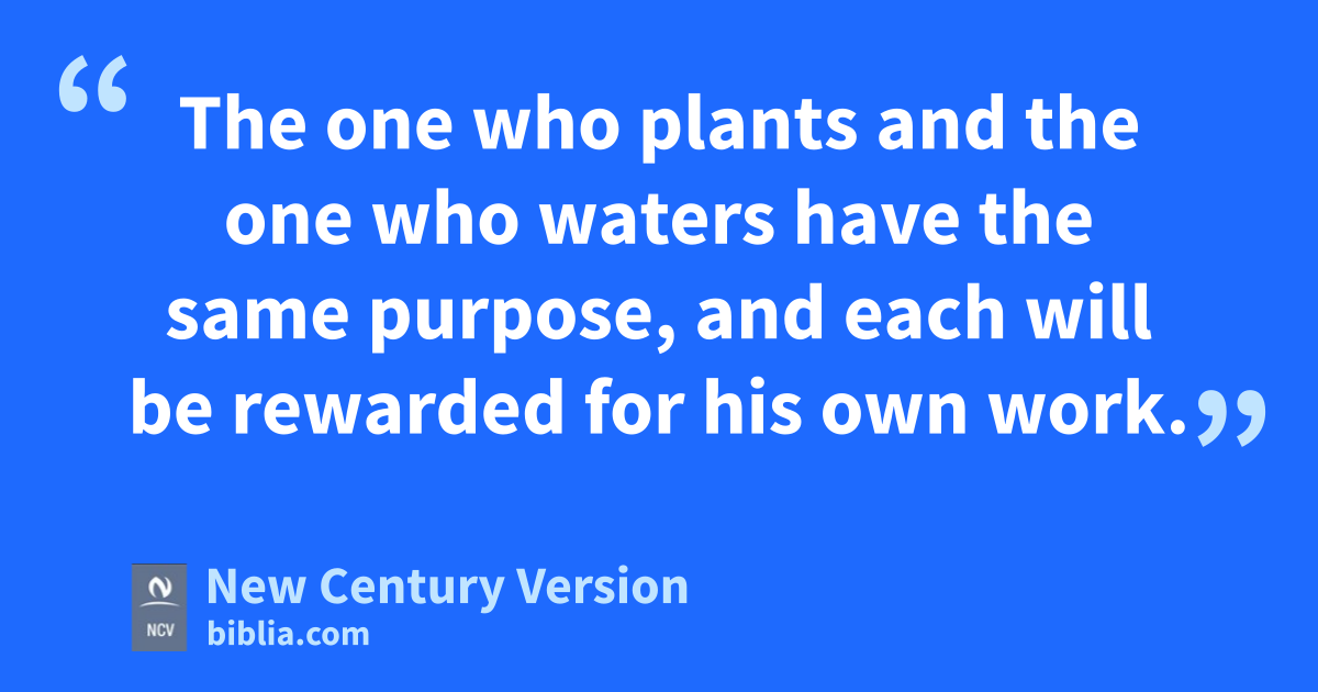 5 Is Apollos important? No! Is Paul important? No! We are only servants of God who helped you believe. Each one of us did the work God gave us to do. 6 I planted the seed, and Apollos watered it. But God is the One who made it grow. 7 So the one who plants is not important, and the one who waters is not important. Only God, who makes things grow, is important. 8 The one who plants and the one who waters have the same purpose, and each will be rewarded for his own work. 9 We are God’s workers, working together; you are like God’s farm, God’s house.