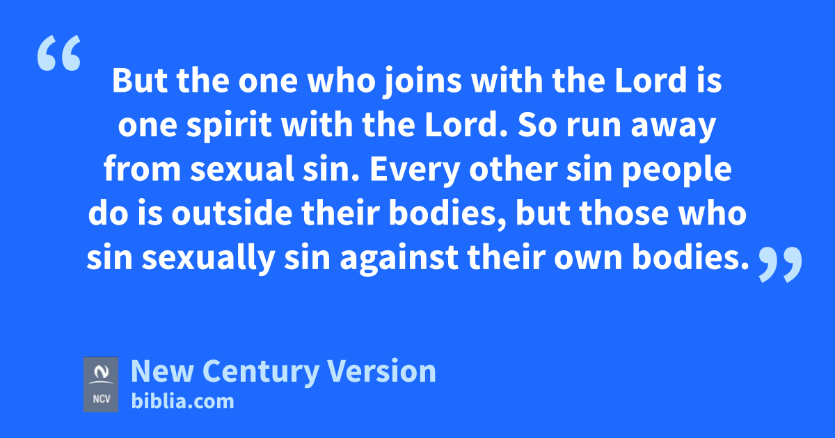 18 So run away from sexual sin. Every other sin people do is outside their bodies, but those who sin sexually sin against their own bodies. 19 You should know that your body is a temple for the Holy Spirit who is in you. You have received the Holy Spirit from God. So you do not belong to yourselves, 20 because you were bought by God for a price. So honor God with your bodies.