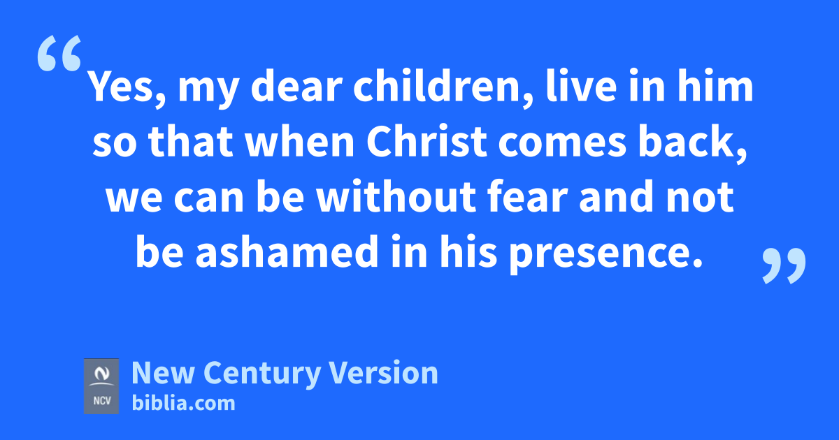 28 Yes, my dear children, live in him so that when Christ comes back, we can be without fear and not be ashamed in his presence. 29 Since you know that Christ is righteous, you know that all who do right are God’s children.