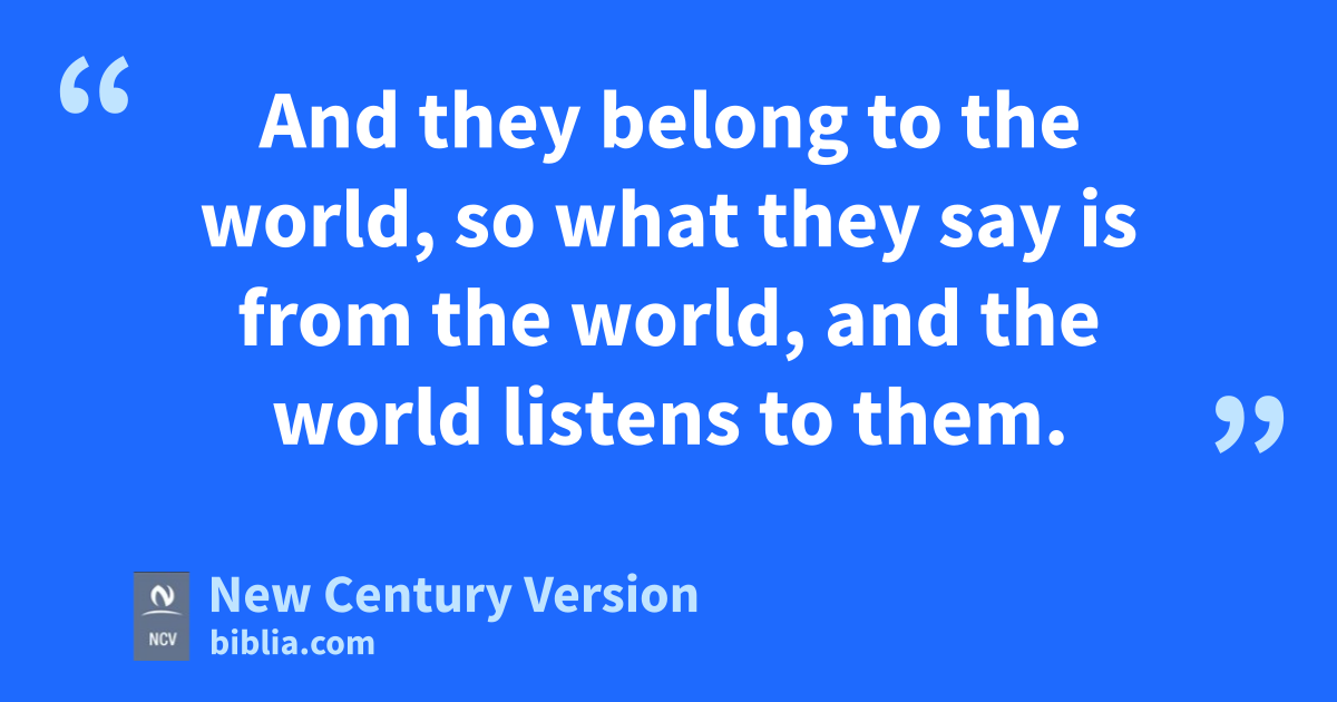 4 My dear children, you belong to God and have defeated them; because God’s Spirit, who is in you, is greater than the devil, who is in the world. 5 And they belong to the world, so what they say is from the world, and the world listens to them. 6 But we belong to God, and those who know God listen to us. But those who are not from God do not listen to us. That is how we know the Spirit that is true and the spirit that is false.
