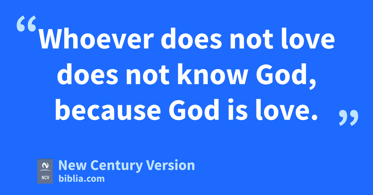 7 Dear friends, we should love each other, because love comes from God. Everyone who loves has become God’s child and knows God. 8 Whoever does not love does not know God, because God is love. 9 This is how God showed his love to us: He sent his one and only Son into the world so that we could have life through him. 10 This is what real love is: It is not our love for God; it is God’s love for us. He sent his Son to die in our place to take away our sins.