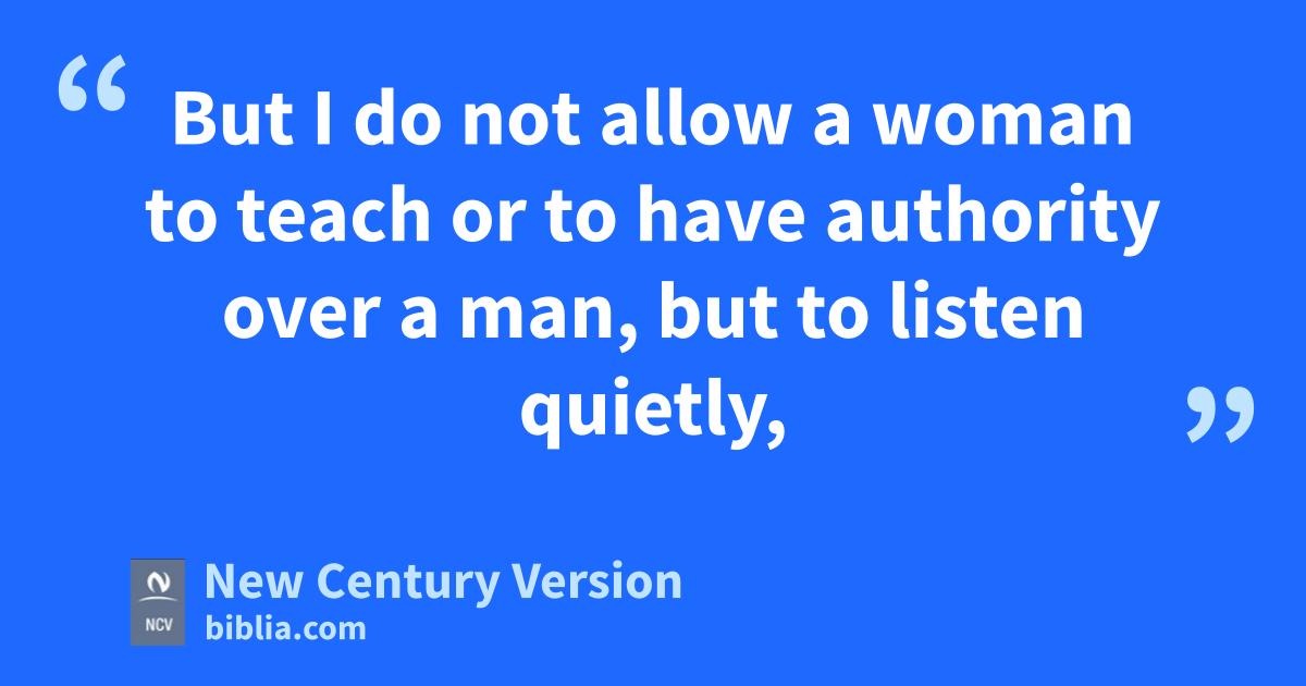 11 Let a woman learn by listening quietly and being ready to cooperate in everything. 12 But I do not allow a woman to teach or to have authority over a man, but to listen quietly, 13 because Adam was formed first and then Eve. 14 And Adam was not tricked, but the woman was tricked and became a sinner. 15 But she will be saved through having children if she continues in faith, love, and holiness, with self-control.