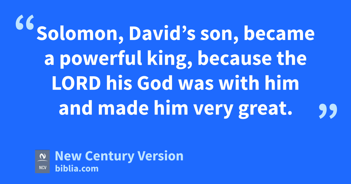 1 Solomon, David’s son, became a powerful king, because the Lord his God was with him and made him very great.