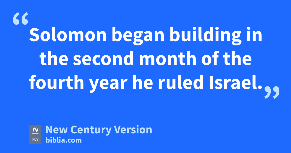 3 Then Solomon began to build the Temple of the Lord in Jerusalem on Mount Moriah. This was where the Lord had appeared to David, Solomon’s father. Solomon built the Temple on the place David had prepared on the threshing floor of Araunah the Jebusite. 2 Solomon began building in the second month of the fourth year he ruled Israel.