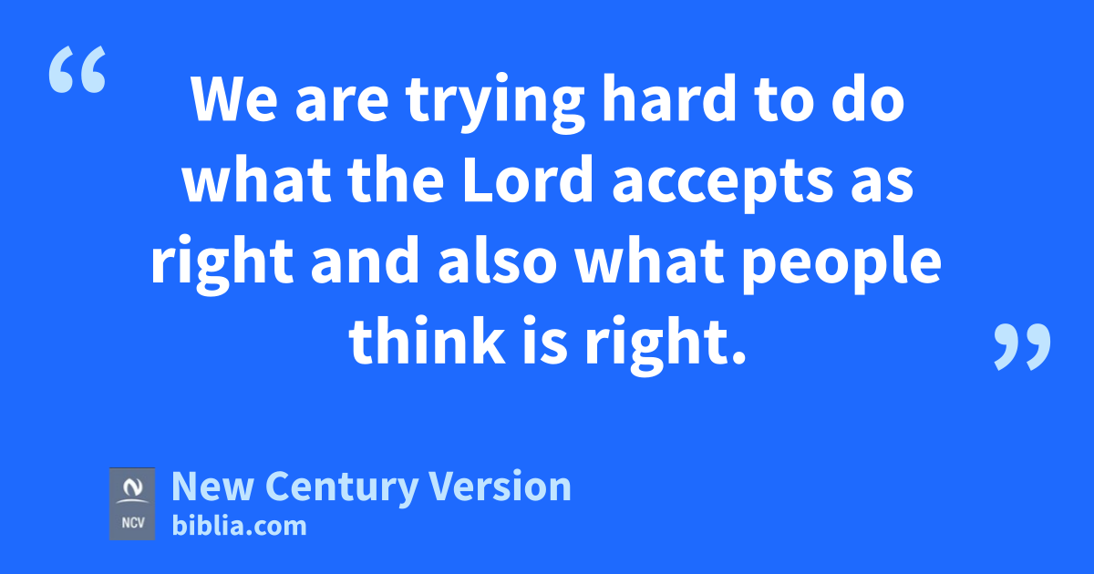 20 We are being careful so that no one will criticize us for the way we are handling this large gift. 21 We are trying hard to do what the Lord accepts as right and also what people think is right.