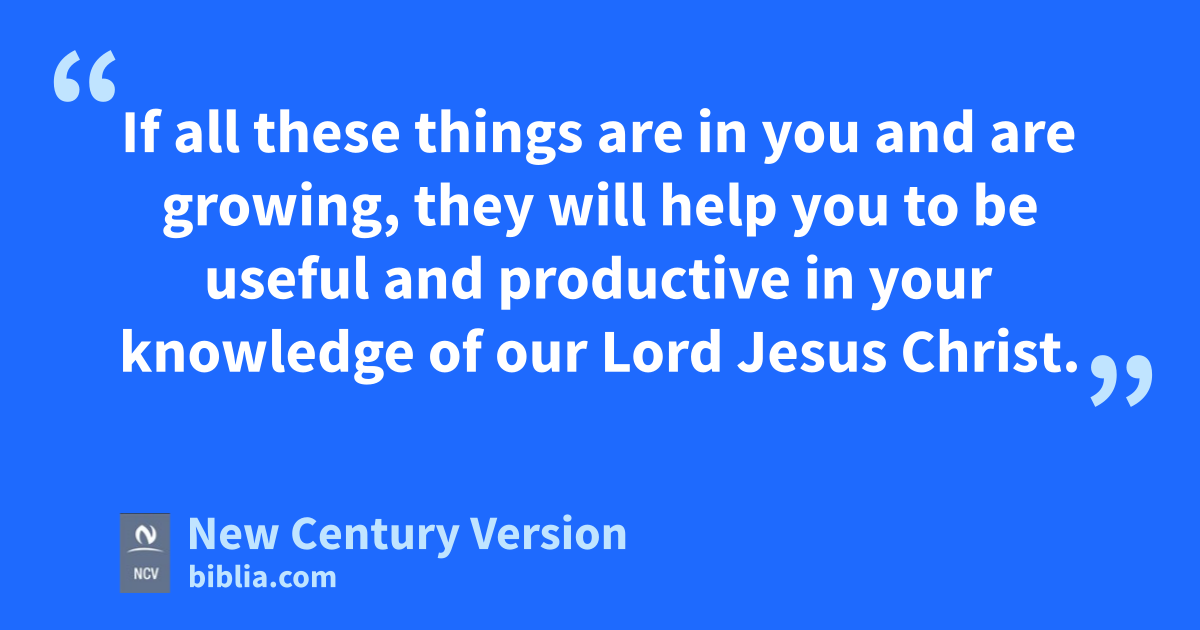 5 Because you have these blessings, do your best to add these things to your lives: to your faith, add goodness; and to your goodness, add knowledge; 6 and to your knowledge, add self-control; and to your self-control, add patience; and to your patience, add service for God; 7 and to your service for God, add kindness for your brothers and sisters in Christ; and to this kindness, add love. 8 If all these things are in you and are growing, they will help you to be useful and productive in your knowledge of our Lord Jesus Christ. 9 But anyone who does not have these things cannot see clearly. He is blind and has forgotten that he was made clean from his past sins.