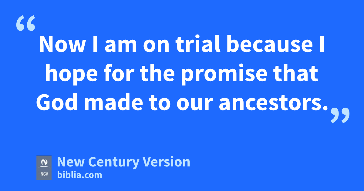 4 “All my people know about my whole life, how I lived from the beginning in my own country and later in Jerusalem. 5 They have known me for a long time. If they want to, they can tell you that I was a good Pharisee. And the Pharisees obey the laws of my tradition more carefully than any other group. 6 Now I am on trial because I hope for the promise that God made to our ancestors. 7 This is the promise that the twelve tribes of our people hope to receive as they serve God day and night. My king, they have accused me because I hope for this same promise! 8 Why do any of you people think it is impossible for God to raise people from the dead?