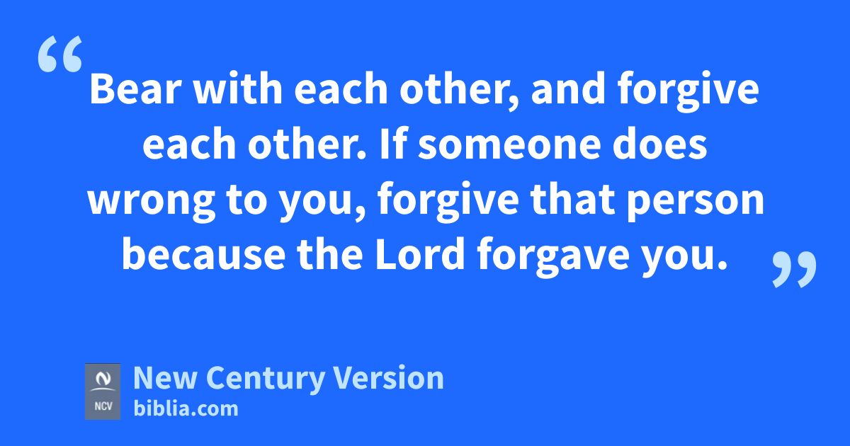 12 God has chosen you and made you his holy people. He loves you. So you should always clothe yourselves with mercy, kindness, humility, gentleness, and patience. 13 Bear with each other, and forgive each other. If someone does wrong to you, forgive that person because the Lord forgave you. 14 Even more than all this, clothe yourself in love. Love is what holds you all together in perfect unity. 15 Let the peace that Christ gives control your thinking, because you were all called together in one body n to have peace. Always be thankful. 16 Let the teaching of Christ live in you richly. Use all wisdom to teach and instruct each other by singing psalms, hymns, and spiritual songs with thankfulness in your hearts to God. 17 Everything you do or say should be done to obey Jesus your Lord. And in all you do, give thanks to God the Father through Jesus.
