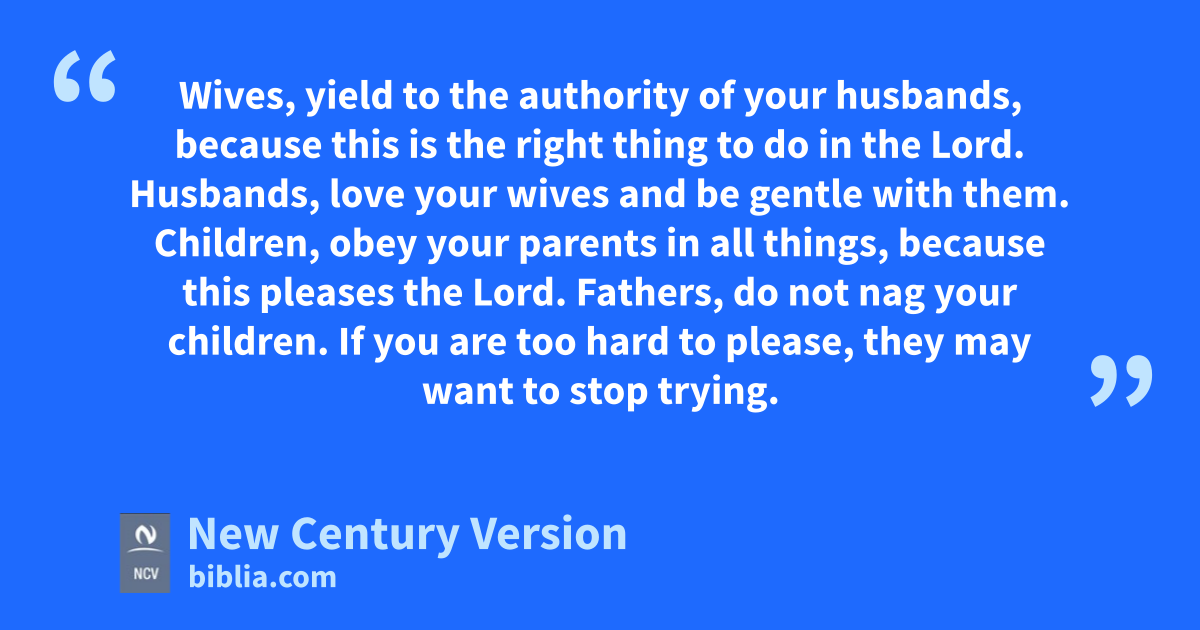 18 Wives, yield to the authority of your husbands, because this is the right thing to do in the Lord.
