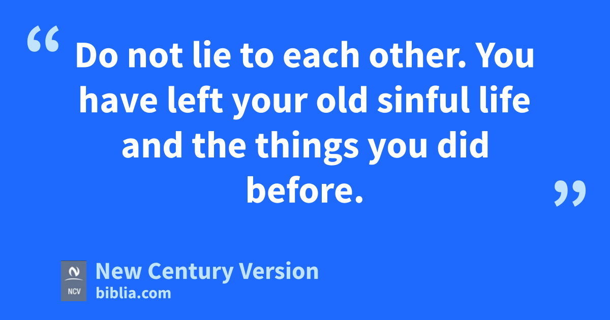 8 But now also put these things out of your life: anger, bad temper, doing or saying things to hurt others, and using evil words when you talk. 9 Do not lie to each other. You have left your old sinful life and the things you did before. 10 You have begun to live the new life, in which you are being made new and are becoming like the One who made you. This new life brings you the true knowledge of God. 11 In the new life there is no difference between Greeks and Jews, those who are circumcised and those who are not circumcised, or people who are foreigners, or Scythians. n There is no difference between slaves and free people. But Christ is in all believers, and Christ is all that is important.