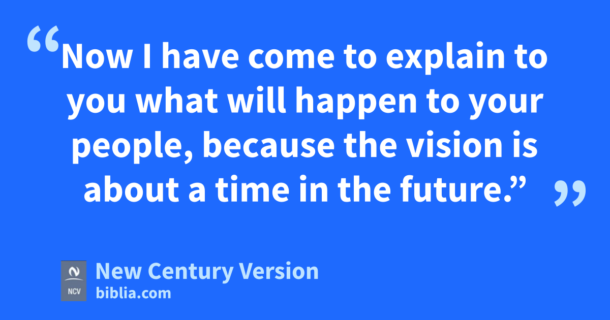 12 Then the man said to me, “Daniel, do not be afraid. Some time ago you decided to get understanding and to humble yourself before your God. Since that time God has listened to you, and I have come because of your prayers. 13 But the prince of Persia has been fighting against me for twenty-one days. Then Michael, one of the most important angels, came to help me, because I had been left there with the king of Persia. 14 Now I have come to explain to you what will happen to your people, because the vision is about a time in the future.”