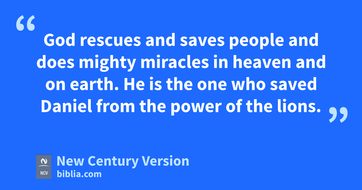 23 King Darius was very happy and told his servants to lift Daniel out of the lions’ den. So they lifted him out and did not find any injury on him, because Daniel had trusted in his God.