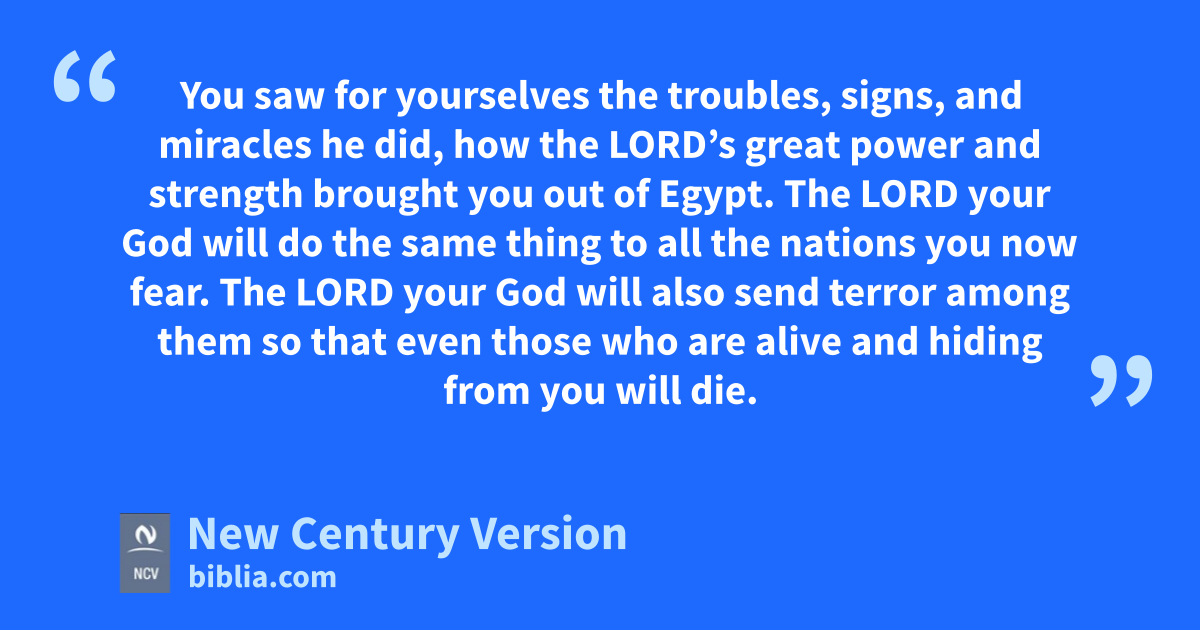 17 You might say to yourselves, “Because these nations are stronger than we are, we can’t force them out.” 18 But don’t be afraid of them. Remember what the Lord your God did to all of Egypt and its king. 19 You saw for yourselves the troubles, signs, and miracles he did, how the Lord’s great power and strength brought you out of Egypt. The Lord your God will do the same thing to all the nations you now fear. 20 The Lord your God will also send terror among them so that even those who are alive and hiding from you will die. 21 Don’t be afraid of them, because the Lord your God is with you; he is a great God and people are afraid of him. 22 When the Lord your God forces those nations out of the land, he will do it little by little ahead of you. You won’t be able to destroy them all at once; otherwise, the wild animals will grow too many in number. 23 But the Lord your God will hand those nations over to you, confusing them until they are destroyed. 24 The Lord will help you defeat their kings, and the world will forget who they were. No one will be able to stop you; you will destroy them all. 25 Burn up their idols in the fire. Do not wish for the silver and gold they have, and don’t take it for yourselves, or you will be trapped by it. The Lord your God hates it. 26 Do not bring one of those hateful things into your house, or you will be completely destroyed along with it. Hate and reject those things; they must be completely destroyed.