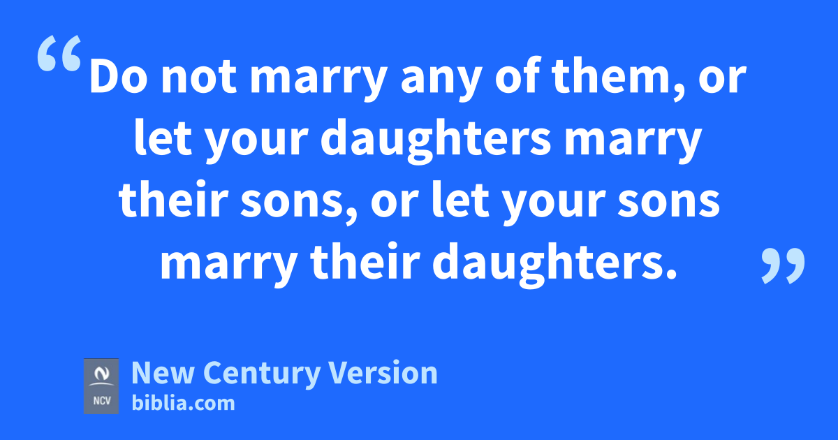 7 The Lord your God will bring you into the land that you are entering and that you will have as your own. As you go in, he will force out these nations: the Hittites, Girgashites, Amorites, Canaanites, Perizzites, Hivites, and Jebusites—seven nations that are stronger than you. 2 The Lord your God will hand these nations over to you, and when you defeat them, you must destroy them completely. Do not make a peace treaty with them or show them any mercy. 3 Do not marry any of them, or let your daughters marry their sons, or let your sons marry their daughters. 4 If you do, those people will turn your children away from me, to begin serving other gods. Then the Lord will be very angry with you, and he will quickly destroy you. 5 This is what you must do to those people: Tear down their altars, smash their holy stone pillars, cut down their Asherah idols, and burn their idols in the fire. 6 You are holy people who belong to the Lord your God. He has chosen you from all the people on earth to be his very own.