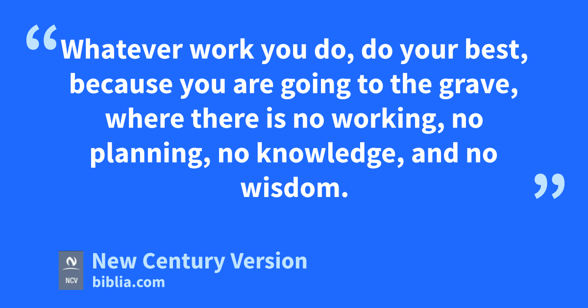 9 Enjoy life with the wife you love. Enjoy all the useless days of this useless life God has given you here on earth, because it is all you have. So enjoy the work you do here on earth. 10 Whatever work you do, do your best, because you are going to the grave, where there is no working, no planning, no knowledge, and no wisdom.