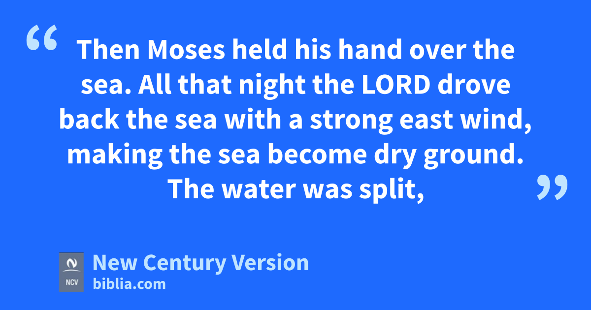 21 Then Moses held his hand over the sea. All that night the Lord drove back the sea with a strong east wind, making the sea become dry ground. The water was split, 22 and the Israelites went through the sea on dry land, with a wall of water on their right and on their left.
