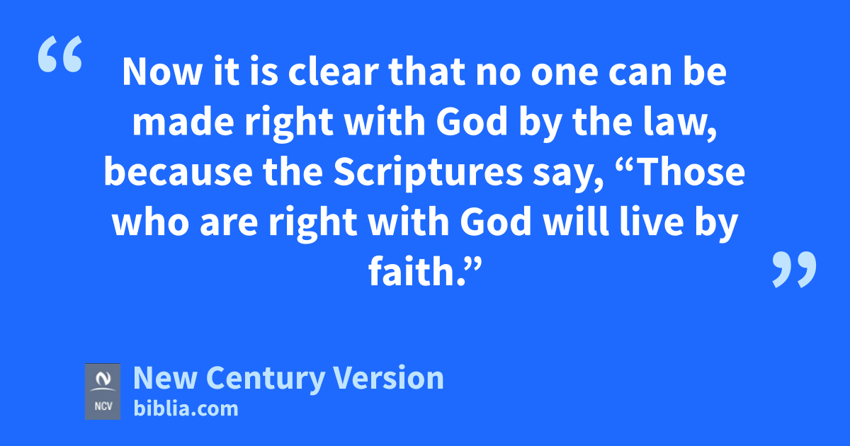 6 The Scriptures say the same thing about Abraham: “Abraham believed God, and God accepted Abraham’s faith, and that faith made him right with God.” n 7 So you should know that the true children of Abraham are those who have faith. 8 The Scriptures, telling what would happen in the future, said that God would make the non-Jewish people right through their faith. This Good News was told to Abraham beforehand, as the Scripture says: “All nations will be blessed through you.” n 9 So all who believe as Abraham believed are blessed just as Abraham was. 10 But those who depend on following the law to make them right are under a curse, because the Scriptures say, “Anyone will be cursed who does not always obey what is written in the Book of the Law.” n 11 Now it is clear that no one can be made right with God by the law, because the Scriptures say, “Those who are right with God will live by faith.” n 12 The law is not based on faith. It says, “A person who obeys these things will live because of them.” n 13 Christ took away the curse the law put on us. He changed places with us and put himself under that curse. It is written in the Scriptures, “Anyone whose body is displayed on a tree n is cursed.” 14 Christ did this so that God’s blessing promised to Abraham might come through Jesus Christ to those who are not Jews. Jesus died so that by our believing we could receive the Spirit that God promised.