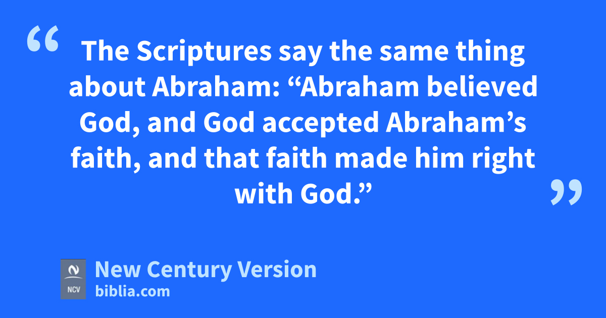 6 The Scriptures say the same thing about Abraham: “Abraham believed God, and God accepted Abraham’s faith, and that faith made him right with God.” n 7 So you should know that the true children of Abraham are those who have faith. 8 The Scriptures, telling what would happen in the future, said that God would make the non-Jewish people right through their faith. This Good News was told to Abraham beforehand, as the Scripture says: “All nations will be blessed through you.” n 9 So all who believe as Abraham believed are blessed just as Abraham was. 10 But those who depend on following the law to make them right are under a curse, because the Scriptures say, “Anyone will be cursed who does not always obey what is written in the Book of the Law.” n 11 Now it is clear that no one can be made right with God by the law, because the Scriptures say, “Those who are right with God will live by faith.” n 12 The law is not based on faith. It says, “A person who obeys these things will live because of them.” n 13 Christ took away the curse the law put on us. He changed places with us and put himself under that curse. It is written in the Scriptures, “Anyone whose body is displayed on a tree n is cursed.” 14 Christ did this so that God’s blessing promised to Abraham might come through Jesus Christ to those who are not Jews. Jesus died so that by our believing we could receive the Spirit that God promised.