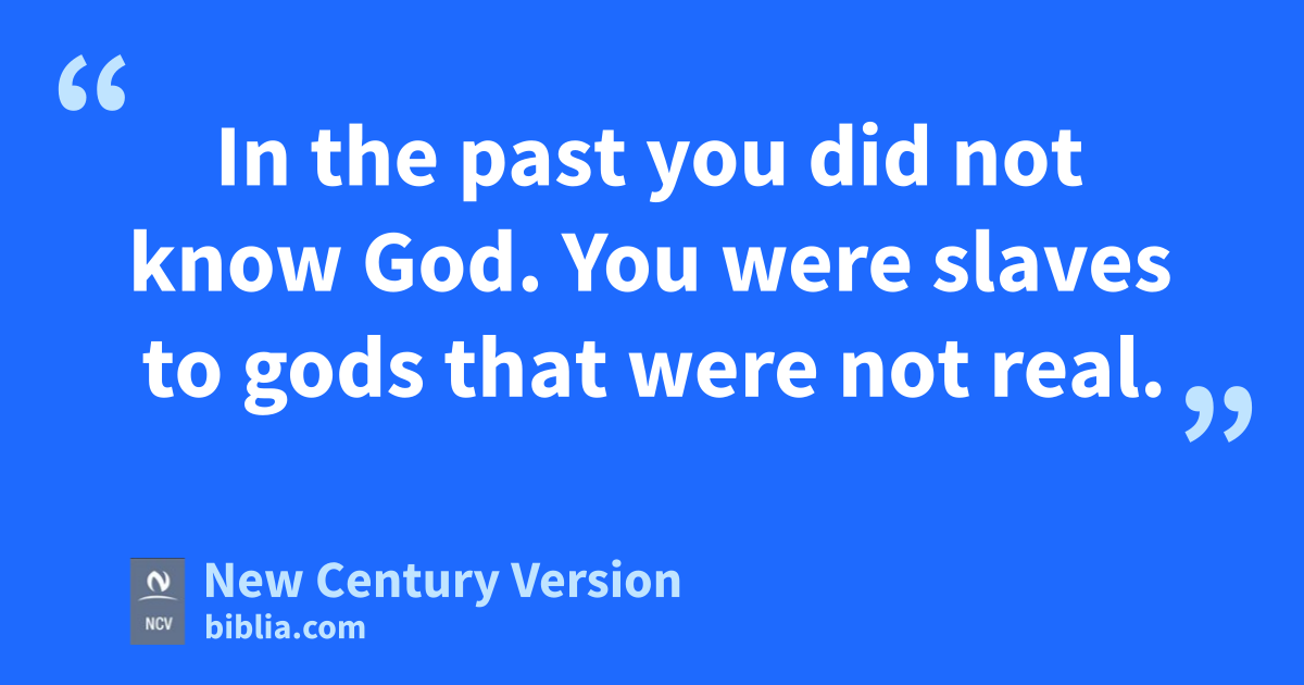 8 In the past you did not know God. You were slaves to gods that were not real. 9 But now you know the true God. Really, it is God who knows you. So why do you turn back to those weak and useless rules you followed before? Do you want to be slaves to those things again? 10 You still follow teachings about special days, months, seasons, and years. 11 I am afraid for you, that my work for you has been wasted.