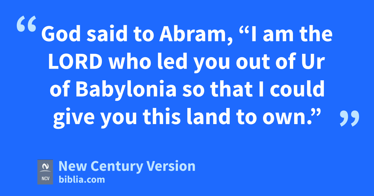 7 God said to Abram, “I am the Lord who led you out of Ur of Babylonia so that I could give you this land to own.”