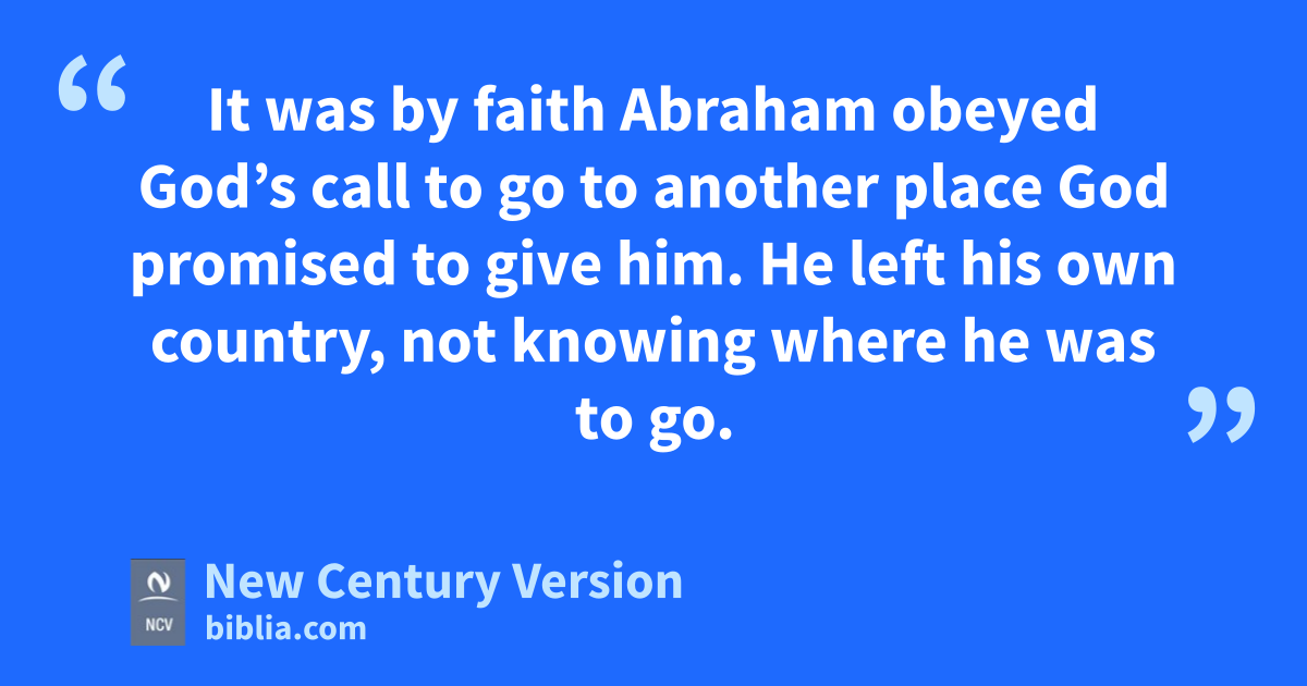 8 It was by faith Abraham obeyed God’s call to go to another place God promised to give him. He left his own country, not knowing where he was to go. 9 It was by faith that he lived like a foreigner in the country God promised to give him. He lived in tents with Isaac and Jacob, who had received that same promise from God. 10 Abraham was waiting for the city n that has real foundations—the city planned and built by God.