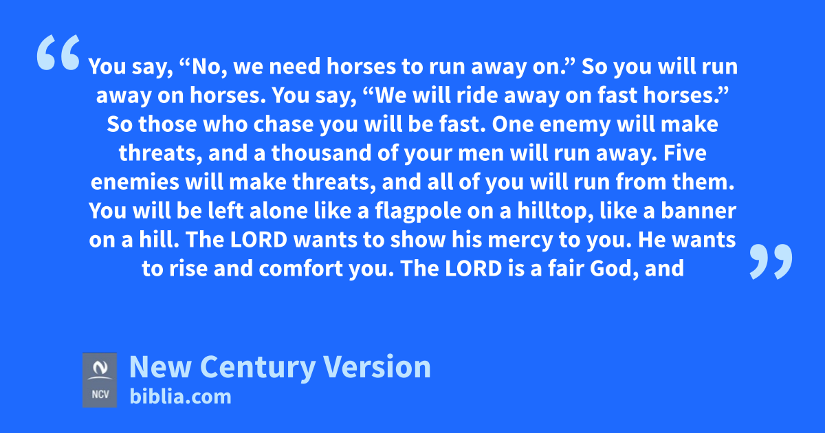 19 You people who live on Mount Zion in Jerusalem will not cry anymore. The Lord will hear your crying, and he will comfort you. When he hears you, he will help you. 20 The Lord has given you sorrow and hurt like the bread and water you ate every day. He is your teacher; he will not continue to hide from you, but you will see your teacher with your own eyes. 21 If you go the wrong way—to the right or to the left—you will hear a voice behind you saying, “This is the right way. You should go this way.” 22 You have statues covered with silver and gold, but you will ruin them for further use. You will throw them away like filthy rags and say, “Go away!”