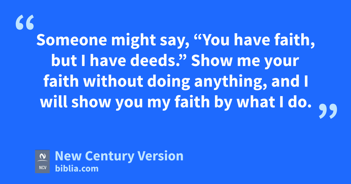 18 Someone might say, “You have faith, but I have deeds.” Show me your faith without doing anything, and I will show you my faith by what I do. 19 You believe there is one God. Good! But the demons believe that, too, and they tremble with fear.