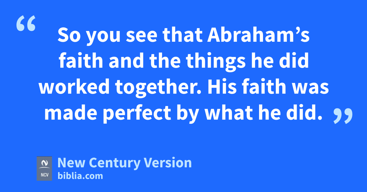 20 You foolish person! Must you be shown that faith that does nothing is worth nothing? 21 Abraham, our ancestor, was made right with God by what he did when he offered his son Isaac on the altar. 22 So you see that Abraham’s faith and the things he did worked together. His faith was made perfect by what he did. 23 This shows the full meaning of the Scripture that says: “Abraham believed God, and God accepted Abraham’s faith, and that faith made him right with God.” n And Abraham was called God’s friend. n 24 So you see that people are made right with God by what they do, not by faith only.