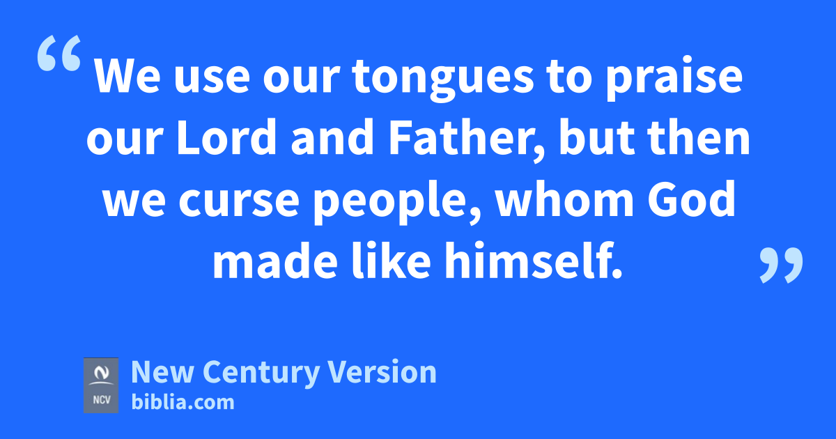 A big forest fire can be started with only a little flame. 6 And the tongue is like a fire. It is a whole world of evil among the parts of our bodies. The tongue spreads its evil through the whole body. The tongue is set on fire by hell, and it starts a fire that influences all of life. 7 People can tame every kind of wild animal, bird, reptile, and fish, and they have tamed them, 8 but no one can tame the tongue. It is wild and evil and full of deadly poison. 9 We use our tongues to praise our Lord and Father, but then we curse people, whom God made like himself. 10 Praises and curses come from the same mouth! My brothers and sisters, this should not happen. 11 Do good and bad water flow from the same spring? 12 My brothers and sisters, can a fig tree make olives, or can a grapevine make figs? No! And a well full of salty water cannot give good water.