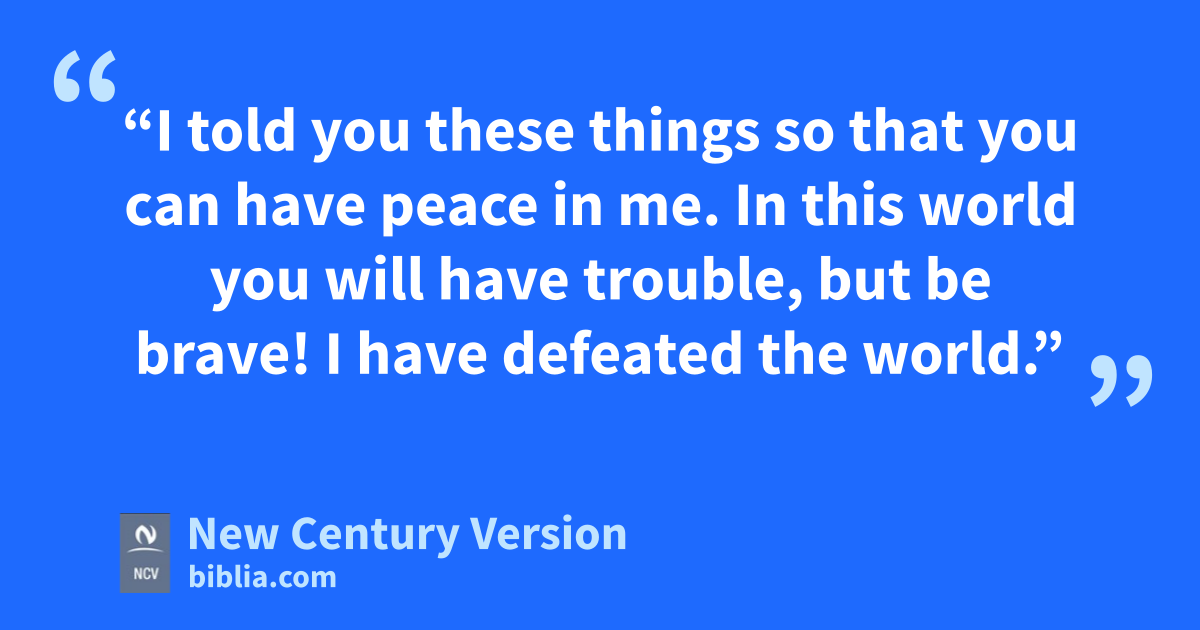 33 “I told you these things so that you can have peace in me. In this world you will have trouble, but be brave! I have defeated the world.”