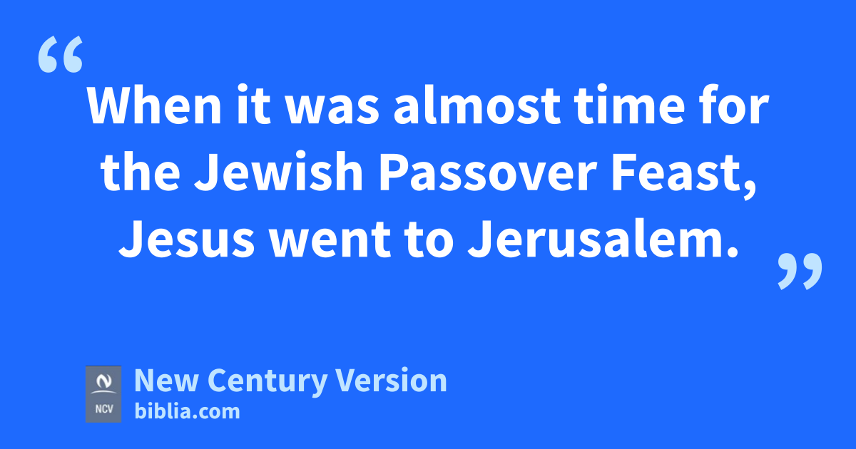 12 After this, Jesus went to the town of Capernaum with his mother, brothers, and followers. They stayed there for just a few days. 13 When it was almost time for the Jewish Passover Feast, Jesus went to Jerusalem. 14 In the Temple he found people selling cattle, sheep, and doves. He saw others sitting at tables, exchanging different kinds of money. 15 Jesus made a whip out of cords and forced all of them, both the sheep and cattle, to leave the Temple. He turned over the tables and scattered the money of those who were exchanging it. 16 Then he said to those who were selling pigeons, “Take these things out of here! Don’t make my Father’s house a place for buying and selling!”