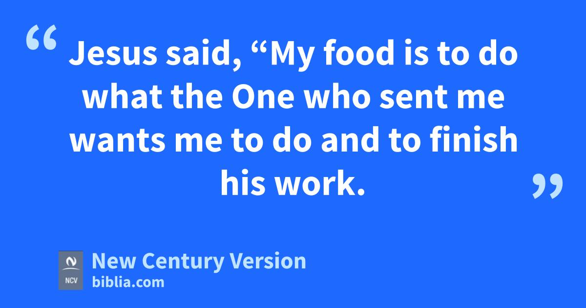 34 Jesus said, “My food is to do what the One who sent me wants me to do and to finish his work. 35 You have a saying, ‘Four more months till harvest.’ But I tell you, open your eyes and look at the fields ready for harvest now. 36 Already, the one who harvests is being paid and is gathering crops for eternal life. So the one who plants and the one who harvests celebrate at the same time. 37 Here the saying is true, ‘One person plants, and another harvests.’ 38 I sent you to harvest a crop that you did not work on. Others did the work, and you get to finish up their work.” n