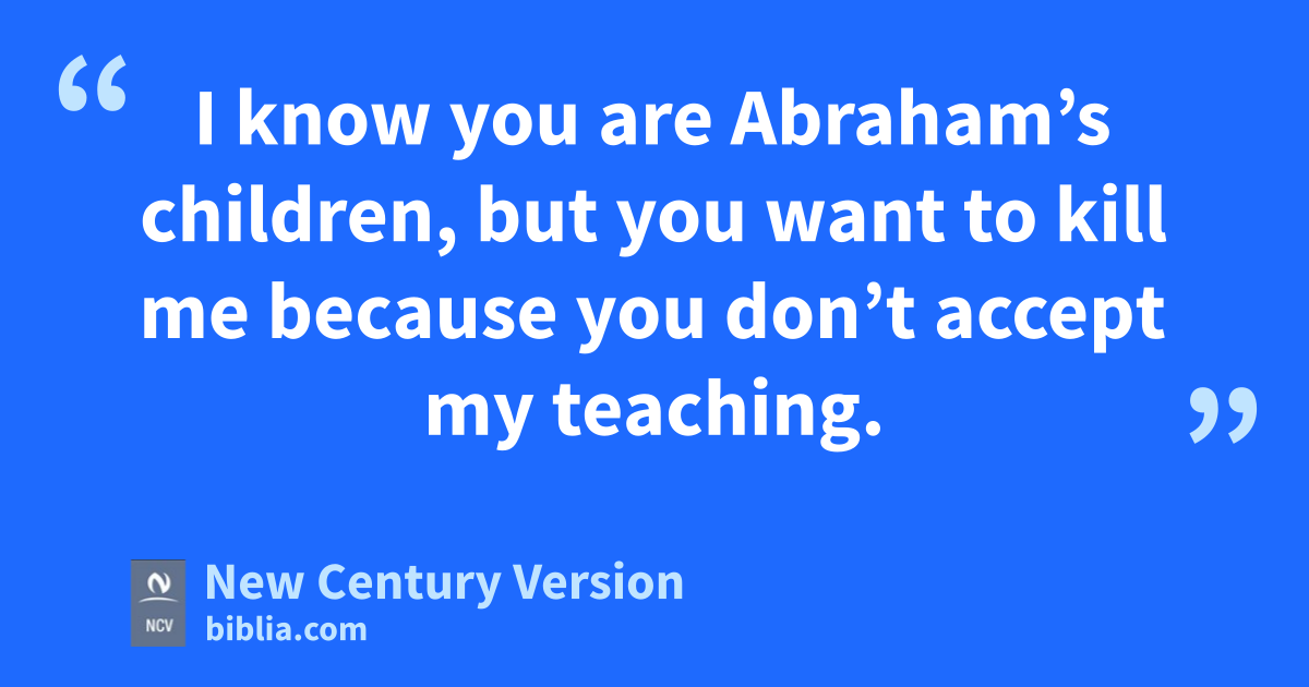 Jesus said, “If you were really Abraham’s children, you would do n the things Abraham did. 40 I am a man who has told you the truth which I heard from God, but you are trying to kill me. Abraham did nothing like that. 41 So you are doing the things your own father did.”