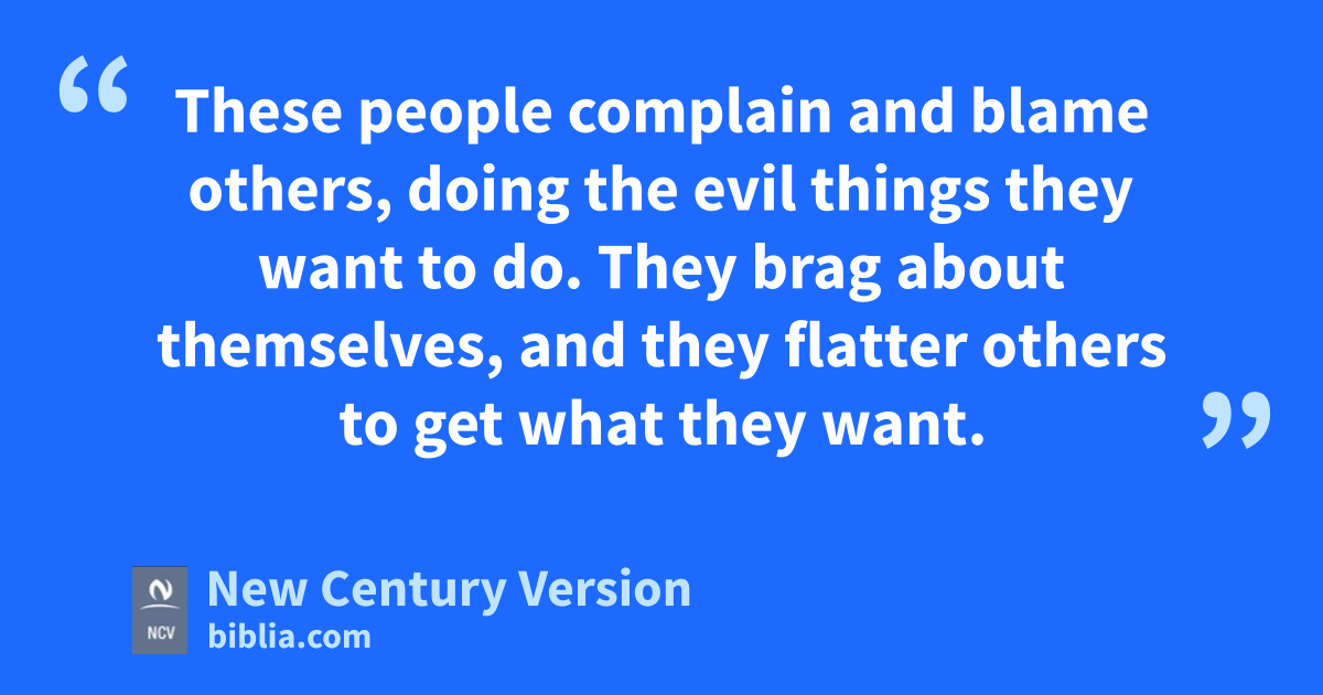 16 These people complain and blame others, doing the evil things they want to do. They brag about themselves, and they flatter others to get what they want.