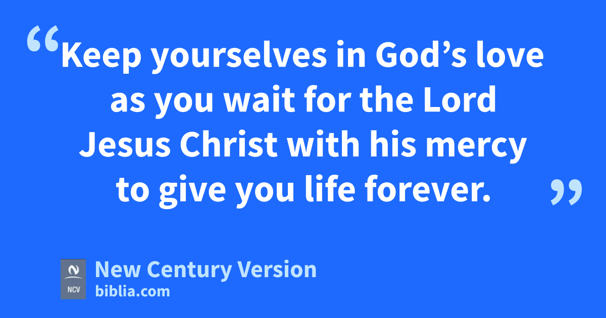 20 But dear friends, use your most holy faith to build yourselves up, praying in the Holy Spirit. 21 Keep yourselves in God’s love as you wait for the Lord Jesus Christ with his mercy to give you life forever.