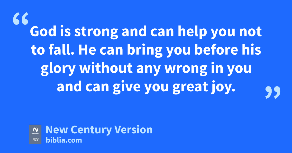24 God is strong and can help you not to fall. He can bring you before his glory without any wrong in you and can give you great joy. 25 He is the only God, the One who saves us. To him be glory, greatness, power, and authority through Jesus Christ our Lord for all time past, now, and forever. Amen.