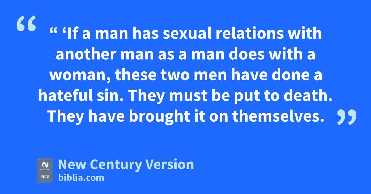 13 “ ‘If a man has sexual relations with another man as a man does with a woman, these two men have done a hateful sin. They must be put to death. They have brought it on themselves.