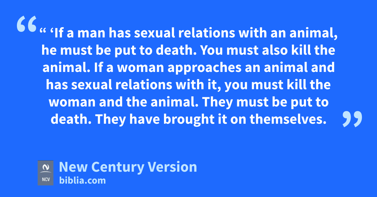 15 “ ‘If a man has sexual relations with an animal, he must be put to death. You must also kill the animal. 16 If a woman approaches an animal and has sexual relations with it, you must kill the woman and the animal. They must be put to death. They have brought it on themselves.