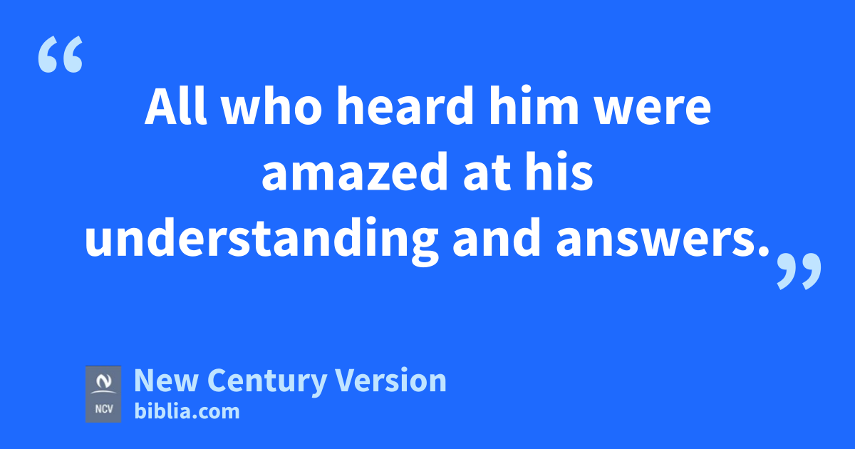 41 Every year Jesus’ parents went to Jerusalem for the Passover Feast. 42 When he was twelve years old, they went to the feast as they always did. 43 After the feast days were over, they started home. The boy Jesus stayed behind in Jerusalem, but his parents did not know it. 44 Thinking that Jesus was with them in the group, they traveled for a whole day. Then they began to look for him among their family and friends. 45 When they did not find him, they went back to Jerusalem to look for him there. 46 After three days they found Jesus sitting in the Temple with the teachers, listening to them and asking them questions. 47 All who heard him were amazed at his understanding and answers. 48 When Jesus’ parents saw him, they were astonished. His mother said to him, “Son, why did you do this to us? Your father and I were very worried about you and have been looking for you.”