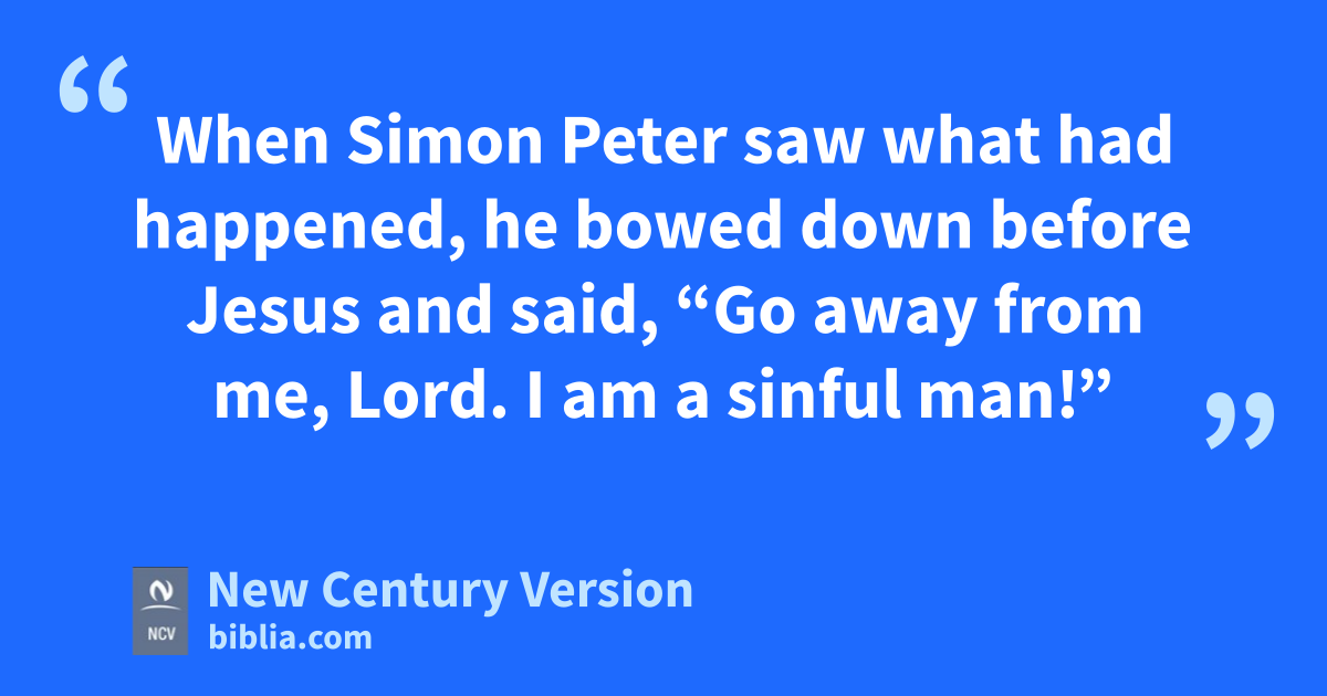 8 When Simon Peter saw what had happened, he bowed down before Jesus and said, “Go away from me, Lord. I am a sinful man!” 9 He and the other fishermen were amazed at the many fish they caught, as were 10 James and John, the sons of Zebedee, Simon’s partners.