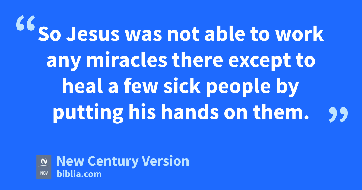 4 Jesus said to them, “A prophet is honored everywhere except in his hometown and with his own people and in his own home.” 5 So Jesus was not able to work any miracles there except to heal a few sick people by putting his hands on them. 6 He was amazed at how many people had no faith.