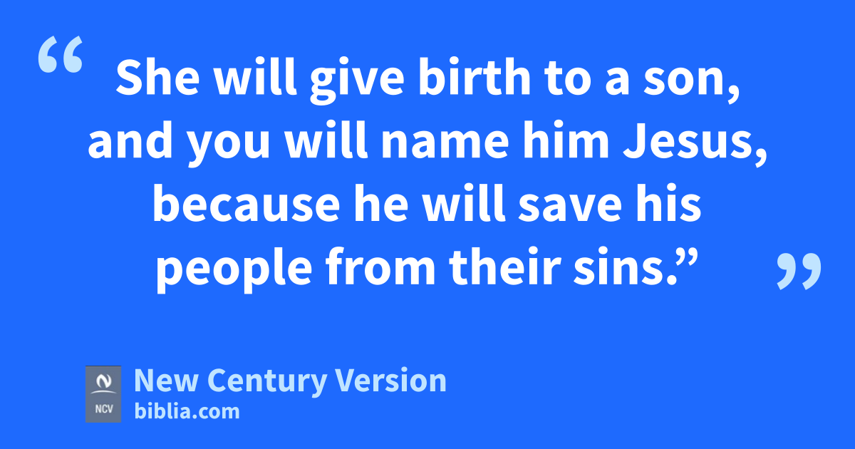 20 While Joseph thought about these things, an angel of the Lord came to him in a dream. The angel said, “Joseph, descendant of David, don’t be afraid to take Mary as your wife, because the baby in her is from the Holy Spirit. 21 She will give birth to a son, and you will name him Jesus, n because he will save his people from their sins.”