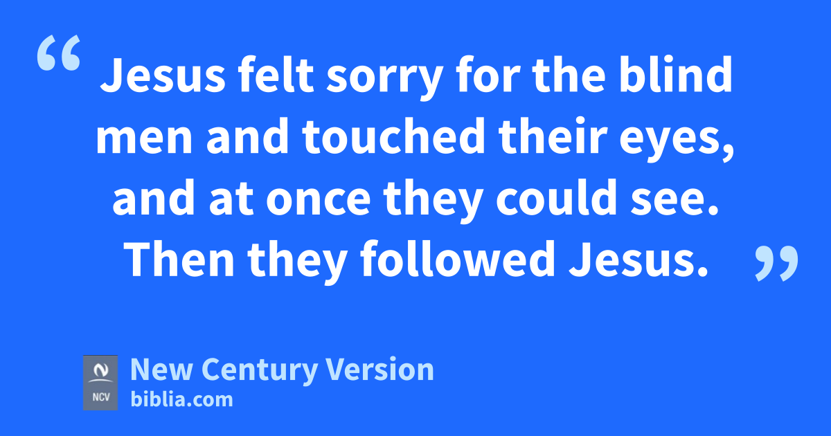 34 Jesus felt sorry for the blind men and touched their eyes, and at once they could see. Then they followed Jesus.