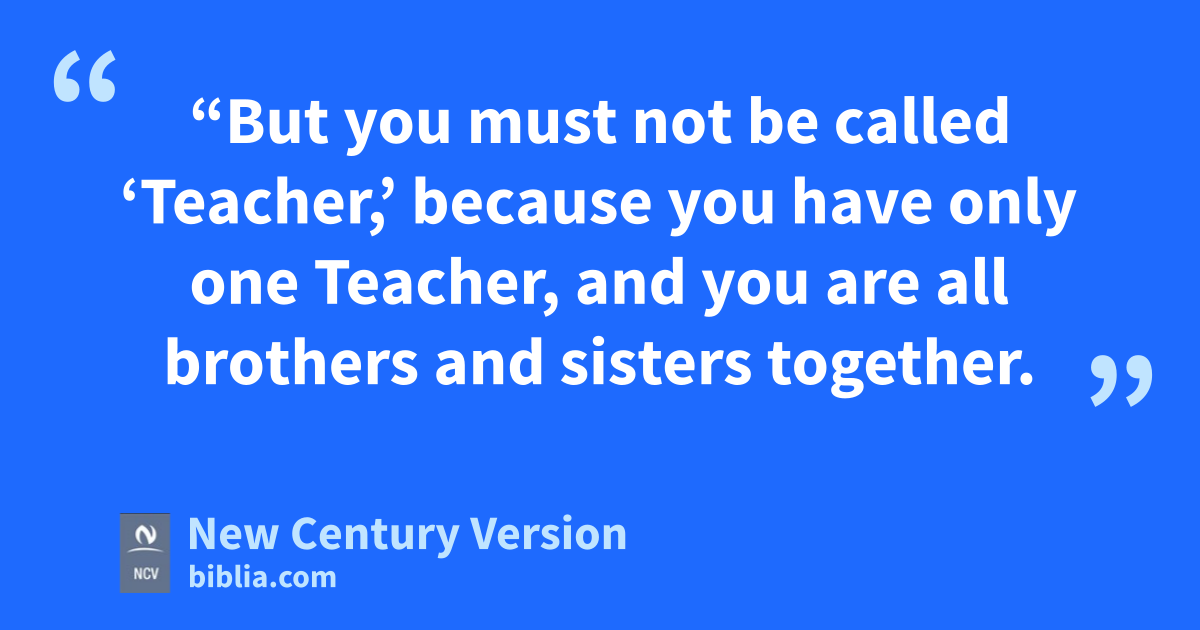 8 “But you must not be called ‘Teacher,’ because you have only one Teacher, and you are all brothers and sisters together. 9 And don’t call any person on earth ‘Father,’ because you have one Father, who is in heaven. 10 And you should not be called ‘Master,’ because you have only one Master, the Christ. 11 Whoever is your servant is the greatest among you. 12 Whoever makes himself great will be made humble. Whoever makes himself humble will be made great.